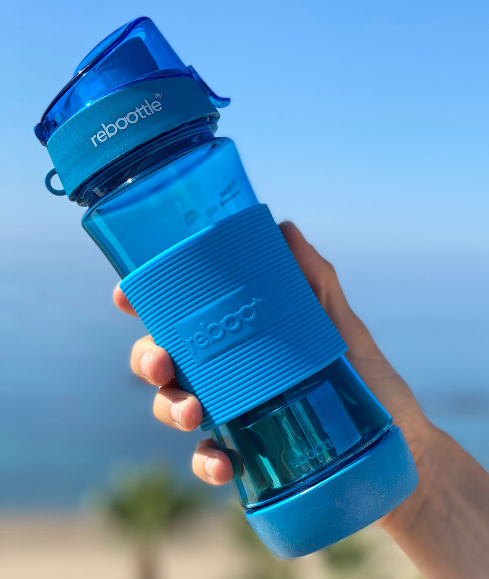Botella reutilizable 450 ml. El cuerpo de la botella está fabricada en Tritán, un material muy resistente que no tiene migraciones, ni retiene olores ni sabores y es apto para frío y calor. Su filtro interior es especial para hacer infusiones o tés.